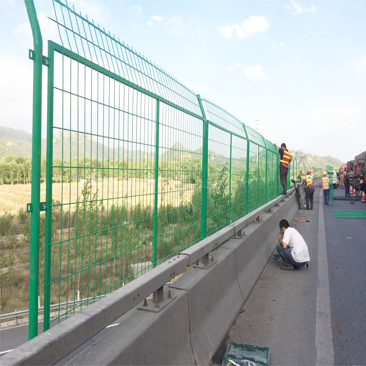 框架護(hù)欄網(wǎng)?:帶邊框的護(hù)欄網(wǎng),增加了其堅固度與承受能力,常見于高速公路邊上,多為綠色,頂部有30公分的30°折彎,起到防攀爬作用。